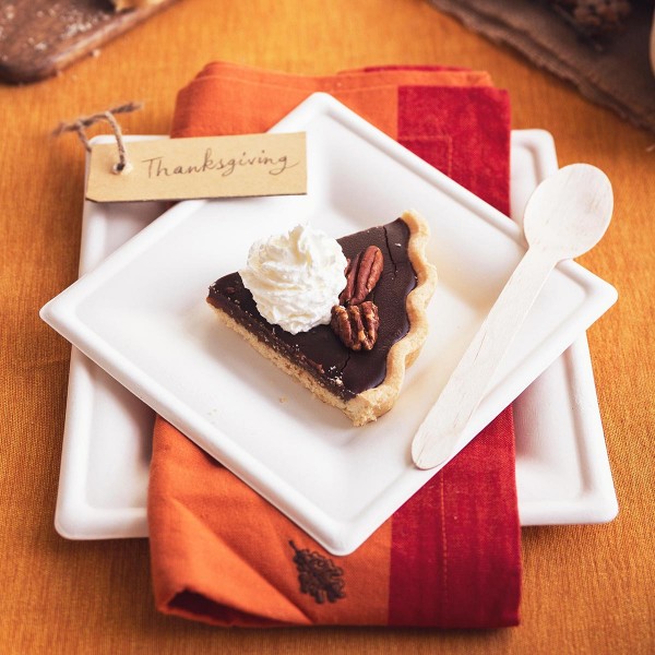 Stylish square eco side plate. Great for hot or cold, and sturdy enough to load up with food. Bagasse is recycled sugarcane fibre. Tree-free! Sleek white. Award-winning quality , made from plants. Commercially compostable where accepted.