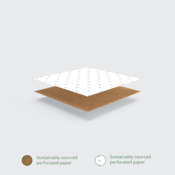 Perfect presentation for paninis! Two layers of perforated paper retain heat but not condensation, so food stays hot and crispy. Suitable for hot cabinets up to 90C. To eat simply tear along the dotted line to enjoy your hot treats tidily. Compatible with some panini grills. Great for paninis, wraps and toasted sandwiches. Sustainable paper. Brown colour with messaging in green. Award-winning quality , made from plants. Commercially compostable where accepted.