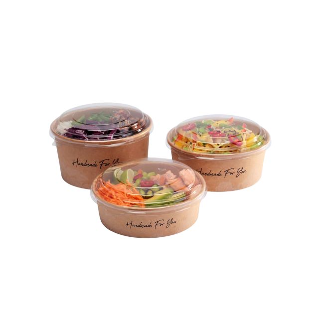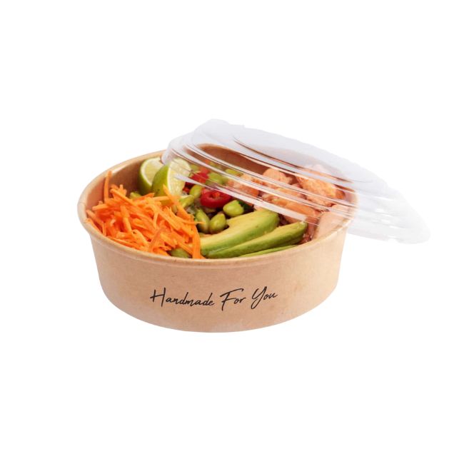 Get back to nature with our 500ml recyclable (ORPL) and home compostable food bowl which features our subtle Back to Nature leaf print. Made from a renewably managed aqueous-lined kraft board with outstanding thermo insulation, it may be paired with both hot and cold foods. With the same wide angle (150mm) as our two larger size bowls, this container is a little shorter for lighter bites and greater portion control. Finish with our clear anti-fog lids which are made from rPET and support a stackable, on-the-go solution