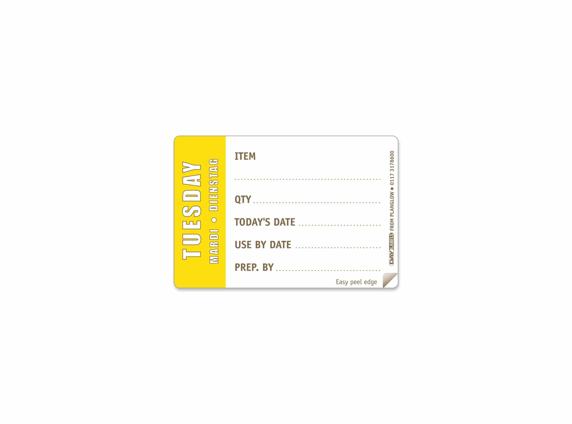 Tear off and fill in product, description, quantity, today’s date, use by date and for extra accountability employees names. Label includes Easy Peel feature.